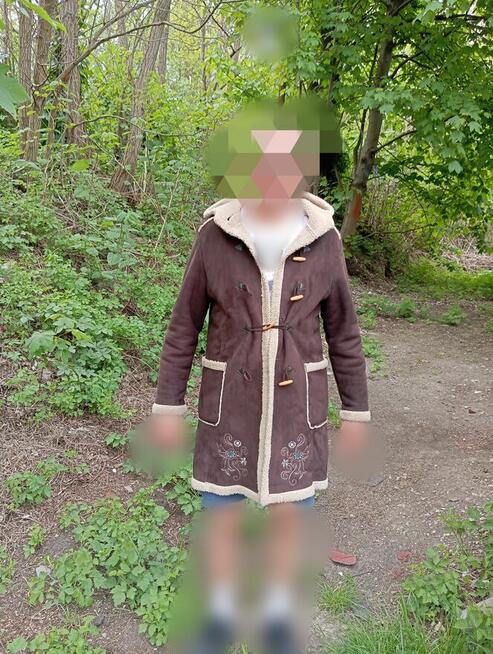 Rozmiar 36, ale na szczupłą panią 38 też może pasować. Sprzedaję jako 38. Materiał ciepły i miły, wstawki z eko ...