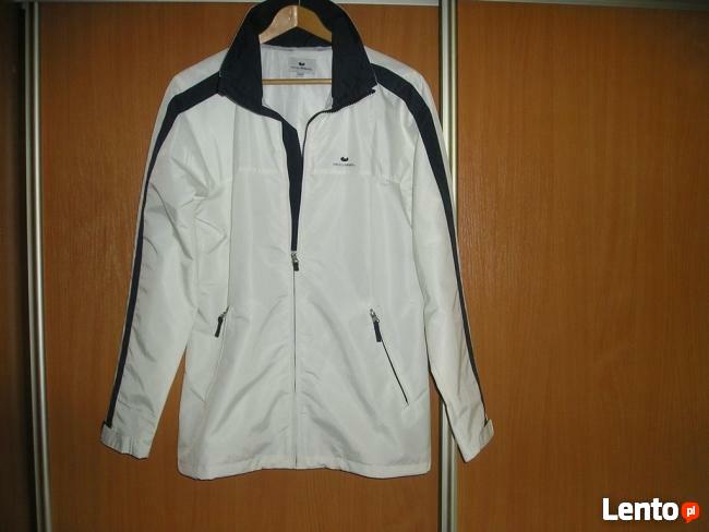 nowa, biało-granatowa, długość 70cm., szerokość pod pachami 54cm., rękaw reglan mierzony od stójki 75,5cm., ...