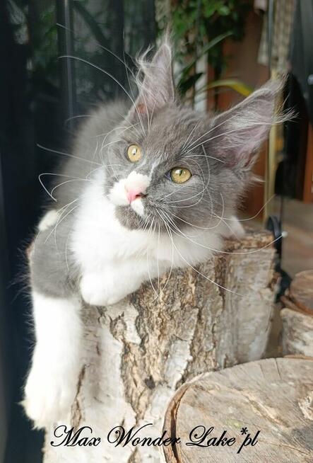 MAX Wonder Lake*PL Kocurek w kolorze niebieski z białym w wieku 3,5 miesiąca. Bardzo duży kot o mocnej budowie, na ...